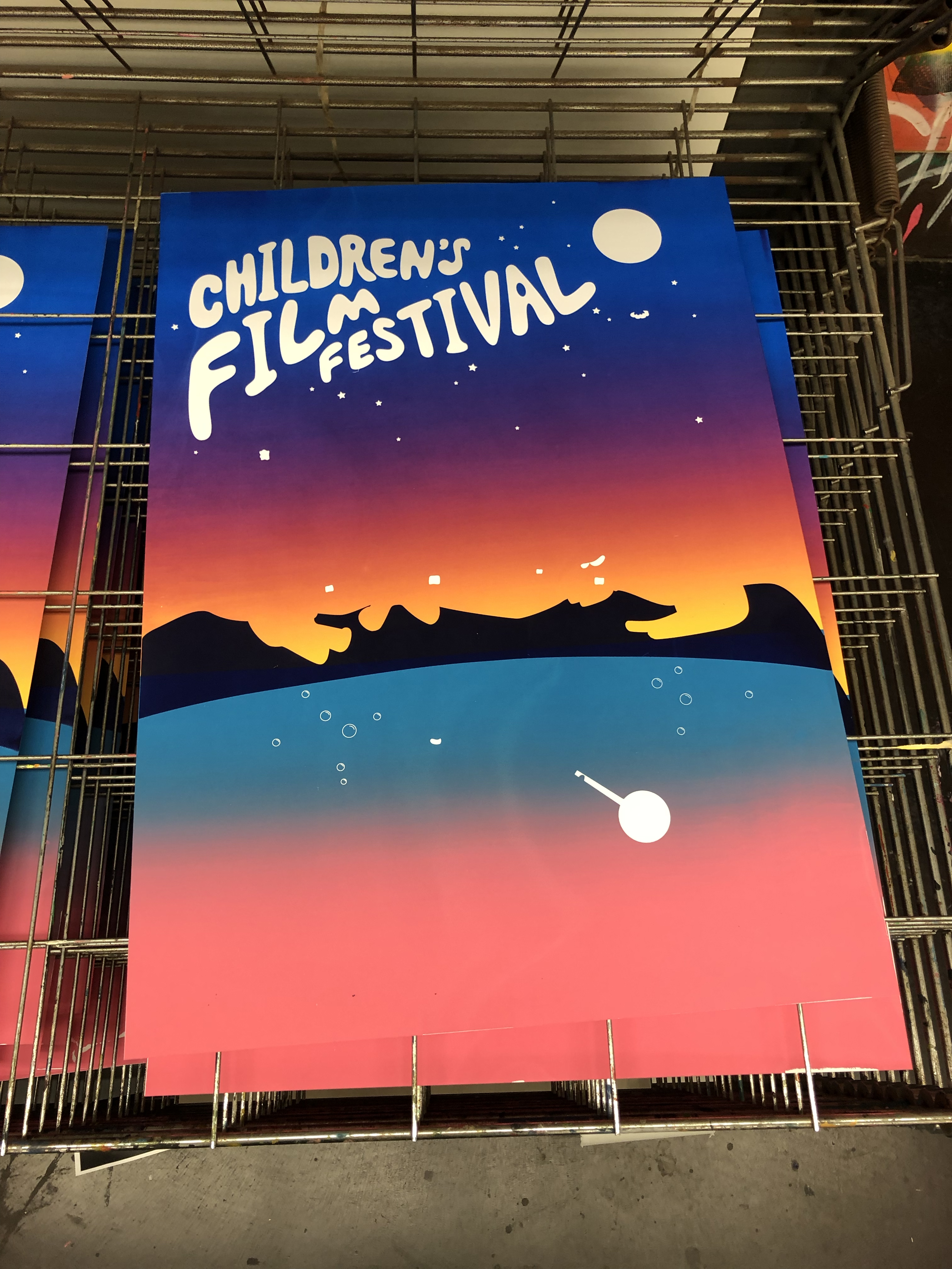 14 colors, 10 layers, and 3 split fountains silkscreen project for the annual REDCAT International Children’s Film Festival. Total run of 34 prints.